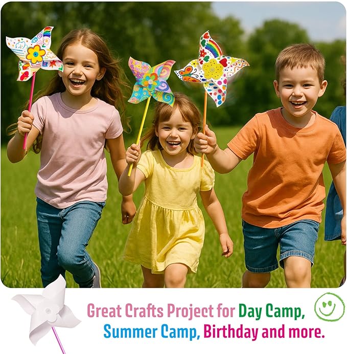 - PREMIUM & SAFE KIDS CRAFTS: Craft worry-free with non-toxic, thick cardstock pinwheels for kids! Kid can use crayons, color pencils, and markers to decorate them. Perfect arts and crafts for kids ages 4-8. Ideal for back to school crafts or art classroom projects, this craft kit encourages artistic expression while creating spinning windmill toys.
