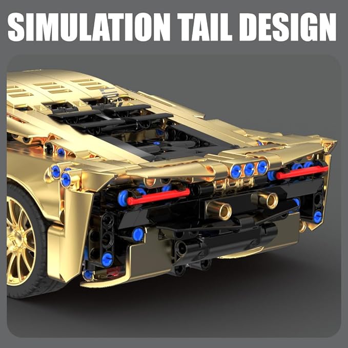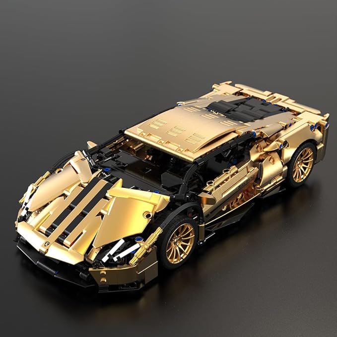 - Featuring a gold color theme with classic scissor doors, headlights, realistic car spoiler and streamlined body, this car building kit embodies the essence of a high performance sports car.