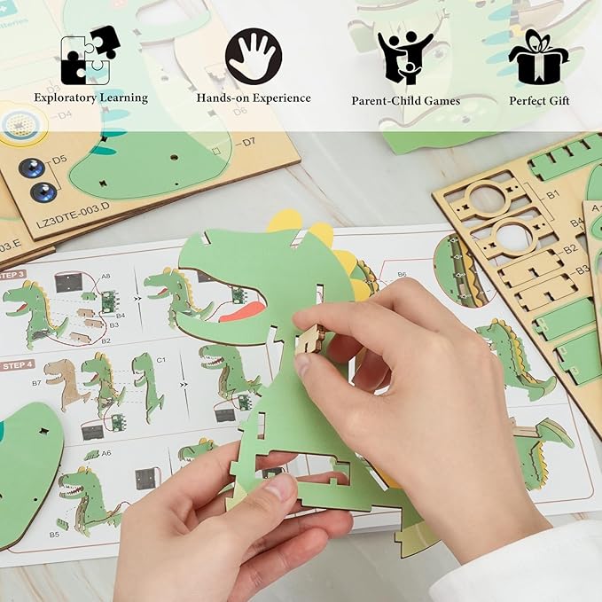 Kosmickiss 3D STEM Wooden Puzzles for Kids, 3D Wooden Models with Voice Recorder, Science STEM Building Kit Creative Craft Toys for Boys Girls Age 8-13 Years Education Birthday Gifts (T-Rex)