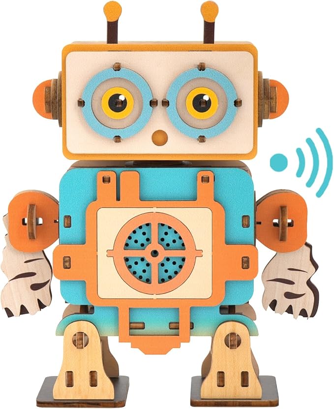 Kosmickiss 3D STEM Wooden Puzzles for Kids, 3D Wooden Models with Voice Recorder, Science STEM Building Kit Creative Craft Toys for Boys Girls Age 8-13 Years Education Birthday Gifts (Grunt Robot)
