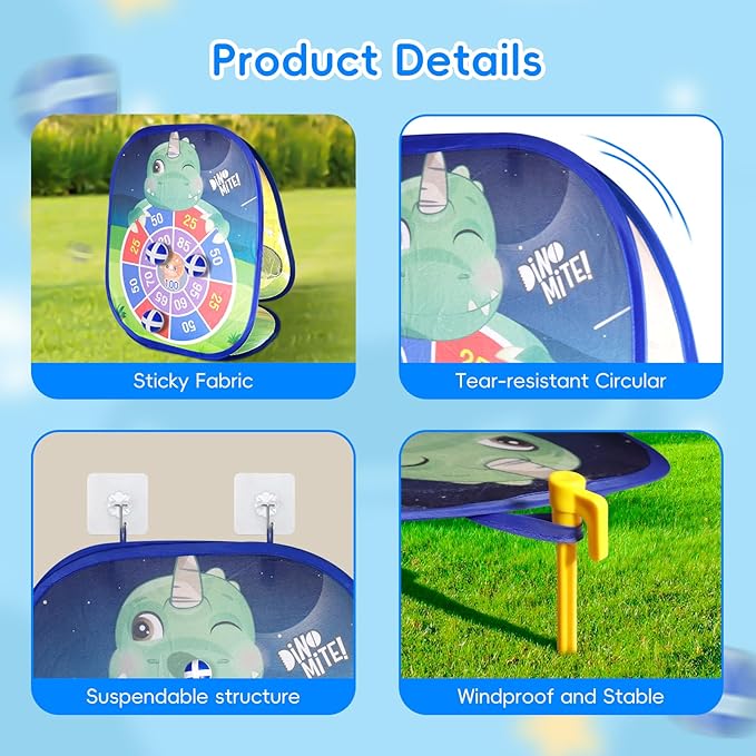 - 【RICH COLORS AND FUN】 cornhole yard games set pattern adopts bright colors and dinosaurs as the theme. Learning to share and confrontation in play, enhancing the desire to explore, stimulating digital sensitivity, and keeping away from electronic screens