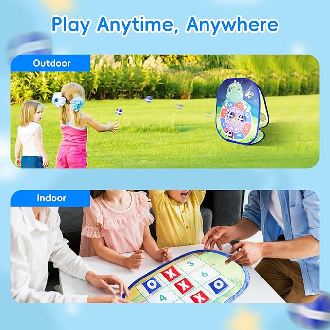 - 【5IN1 GAME MODEL】 Aidolls bean bag toss game for kids includes five games, Bean Bag Toss, Ring Toss, Sticky Dart, Bean Bag Tic Tac Toe, Sticky Ball Tic Tac. A set of toys for 1-2 players. Pair purchase also enables 2/4 player play matches
