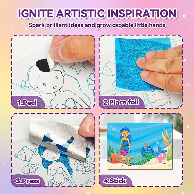 - Simple 3-Step Creative Process Choose a picture canvas 2) Apply foam stickers 3) Press foil sheets - watch magical scenes come to life instantly!