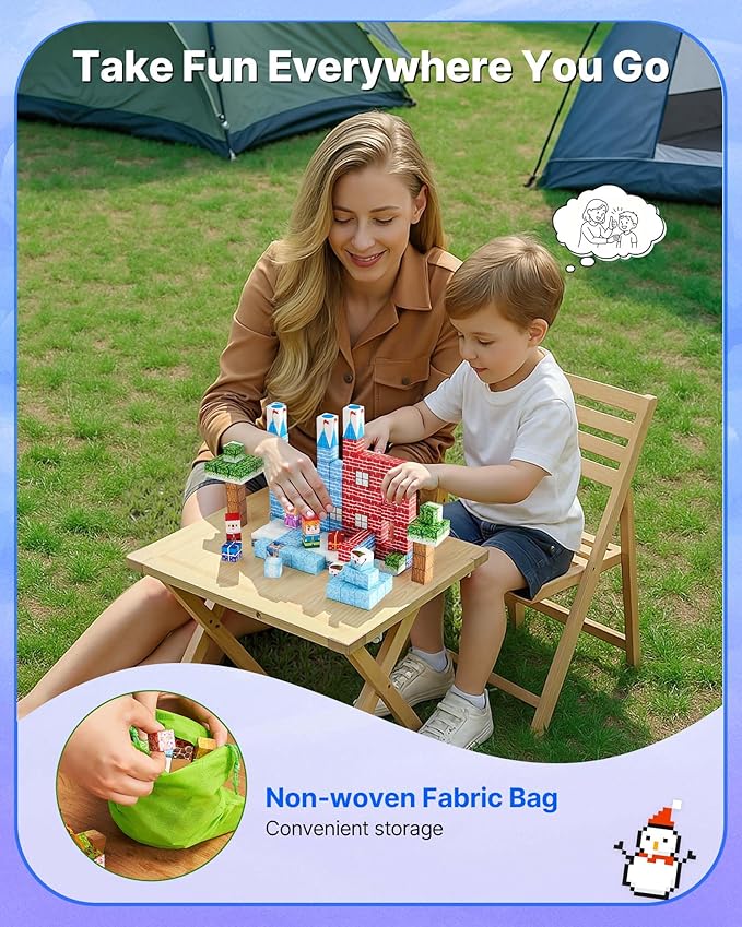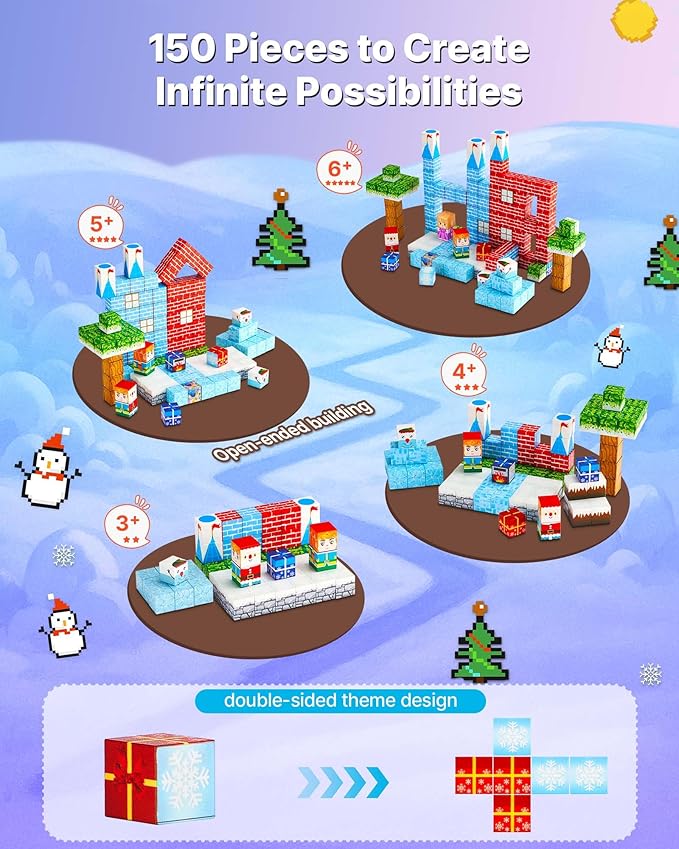 - 【Freeform Building & Dual-sided Themes】 With 150 magnetic blocks and dual-sided themes, your child can create flat designs, 3D structures, and even iconic recreations! Mix and match with other magnet blocks sets to build new stories