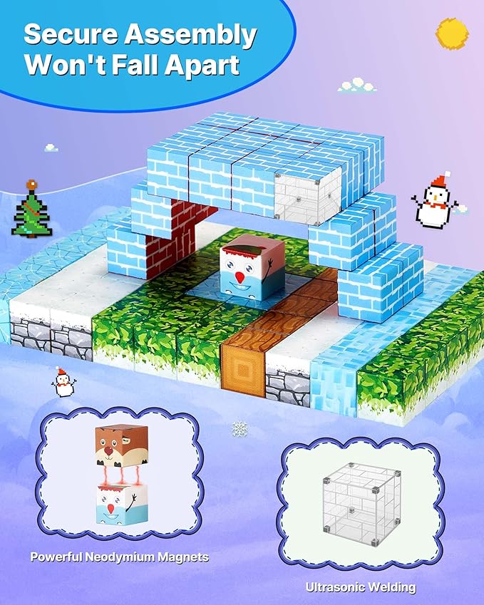 - 【Stable Construction】 Thanks to neodymium magnets and ultrasonic welding, these magnetic blocks stay securely in place, even during multi-layered builds. Ideal for hours of play without falling apart
