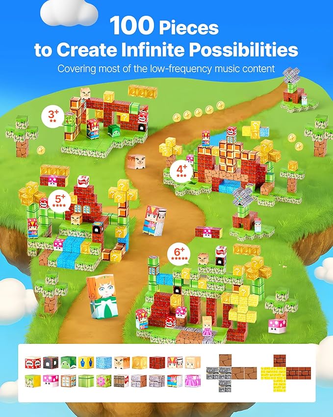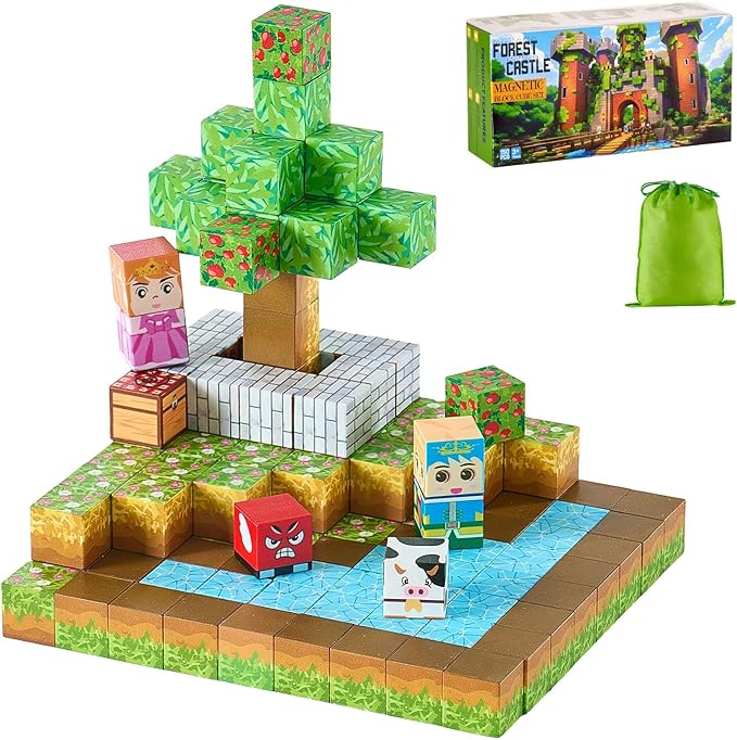 - 【Freeform Building & Dual-sided Themes】 With 100 magnetic blocks and dual-sided themes, your child can create flat designs, 3D structures, and even iconic recreations! Mix and match with other magnet blocks sets to build new stories