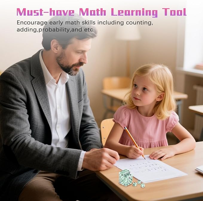 - Create&Learn: In addition to board games and birthday parties, these dice are great for classrooms. They make the ideal learning aid for math concepts such as sorting, addition, subtraction, and probability, as well as other educational activities.