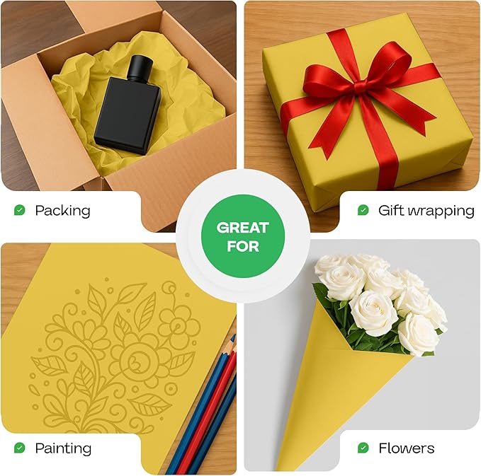 - QUALITY YOU CAN RELY ON: Made in the USA, our yellow wrapping paper reflects IDL Packaging's commitment to sustainability and excellence. Designed for durability and versatility, it combines innovation and environmental responsibility perfectly