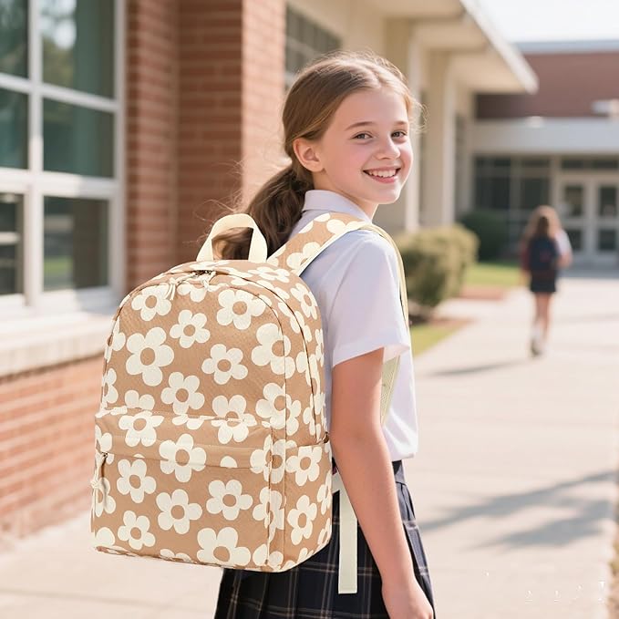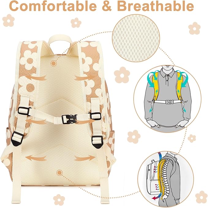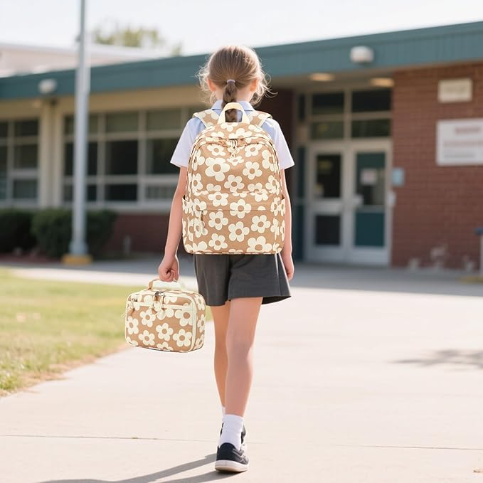 LEDAOU Kids School Backpack with Lunch Box for Boy Girl Toddler BookBag School Bag Preschool Kindergarten Backpack (Flower Brown)