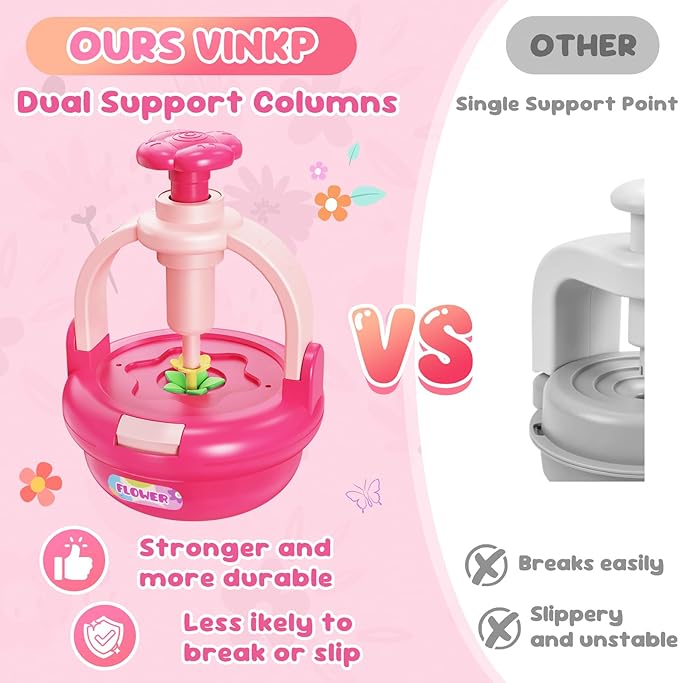 - Easy & Fun for Little Hands: Simple operation with upgraded dual-support handles prevents wobbling for frustration-free crafting! Kids ages 4-10 press perfect flowers using our all-inclusive kit (press machine, flower beds, receptacles, stems, centers, vase, wrapping paper & petals). The detachable base neatly stores key small pieces – perfect for quick cleanup. Tips: use 2-4 petals per flower