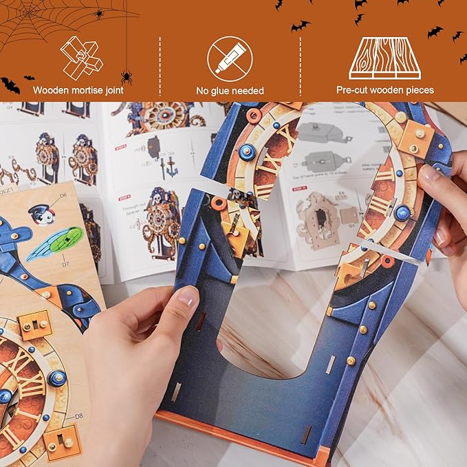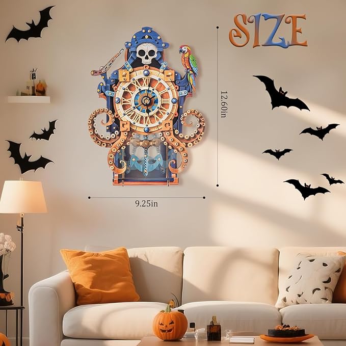 - 【Immersive Pirate Adventure】Build a hauntingly beautiful pirate clock with 38 precision-cut wooden pieces. Featuring a skull with hollow eyes, parrot-perched arm, and coiled tentacles – each snap-fit assembly (no glue needed) unveils a tale of high seas and hidden treasures. Includes step-by-step illustrated guide
