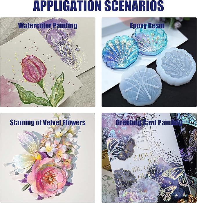 - Safe & Multipurpose Formula - Crafted with natural mica powder, gum arabic, the Glisdyck watercolors paint set are safe for kids and adults;use them for watercolor painting, epoxy resin, card making, or staining of velvet flower ,DIY crafts etc