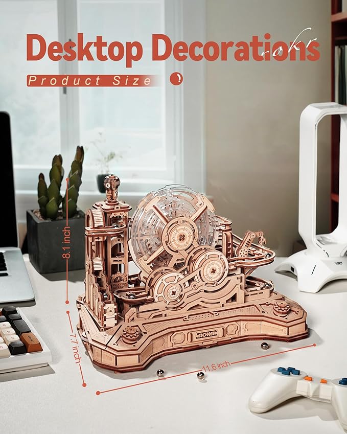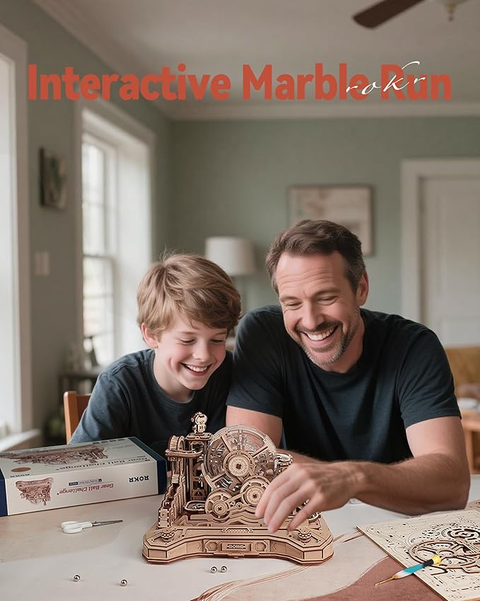 - 【ROKR Gear Ball Challenge】Build the game, then play it! The ROKR Gear Ball Challenge is an interactive marble run and a precision 3d wooden puzzle in one. Shaped like a retro gamepad, this wooden model kit features an auto lift, ramps, and a victory bell. A truly engaging build-and-play experience for all.