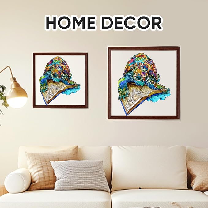- 【UNIQUE WOODEN PUZZLE】 Unlike traditional jigsaw puzzles, our jigsaw puzzles are original, cut into unique shapes, some of them are designed with seashells, sharks, fishes to make jigsaw puzzle time full of fun. Takes about 8 hours completing the reading turtle puzzles, you will get a high-definition, colorful and beautiful home decor to add color to your home