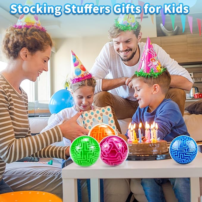Hymaz 4 Pack 3D Puzzle Maze Ball, Magic Brain Teaser Puzzles Maze Game for Adults & Kids, Memory Sequential Gravity Cube Balls Educational Toys Family Play- Easy & Medium & Hard Challenges