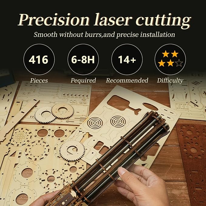 - STUNNING DESIGN AND MECHANICAL INGENUITY: Delve into the world of engineering with this Gatling Gun Wooden Puzzle. Experience the joy of building as you engage with the intricate gears and mechanisms, bringing the Gatling gun to life.