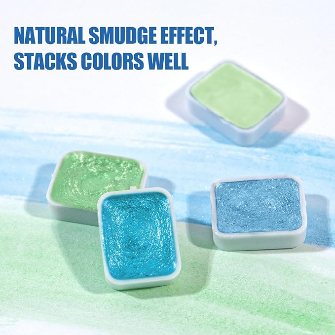 - 【Color-Blendable & Smudgeable】Professional watercolor paint set achieve a smudge effect. Water paint also allow custom mixing and blending to create various colors. Due to high pearl powder content, color vibrancy is slightly affected, but combining with regular watercolor paint sets enables an expanded color palette