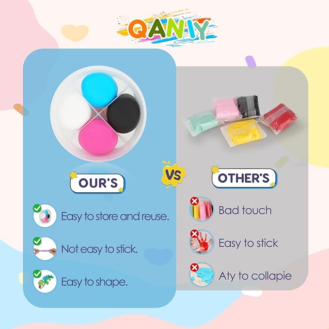 - 【Safe and High-Quality Materials】: Our air dry clay is made of non-toxic, eco-friendly and high-quality materials, does not contain any allergens, and we strictly adhere to CE (EN-71) standards to ensure your children's safety while exploring creativity! (The Clay is Not Edible,Recommended for over 3 year-old children)