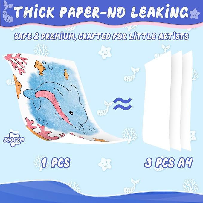 - 【 Eco-Friendly Concept】Our water paint books are made with high-quality super thick paper that resists bleeding and tearing, keeping your child's artwork vibrant and intact. Every page from the coloring book can be torn off easily, so siblings or friends can join in on the fun crafts together!
