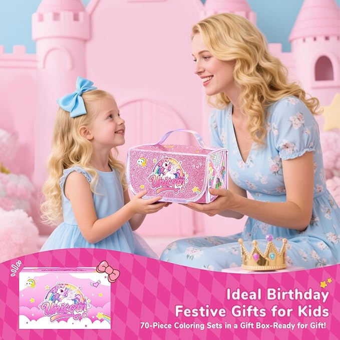 70PCS Unicorn Washable Markers Set with Glitter Pencil Case,Art Supplies for Kids Ages 4-6-8,Drawing Coloring Art Craft Kits for Girls with Marker,Glitter Pens,Crayon,Birthday Gifts Toys for Girls