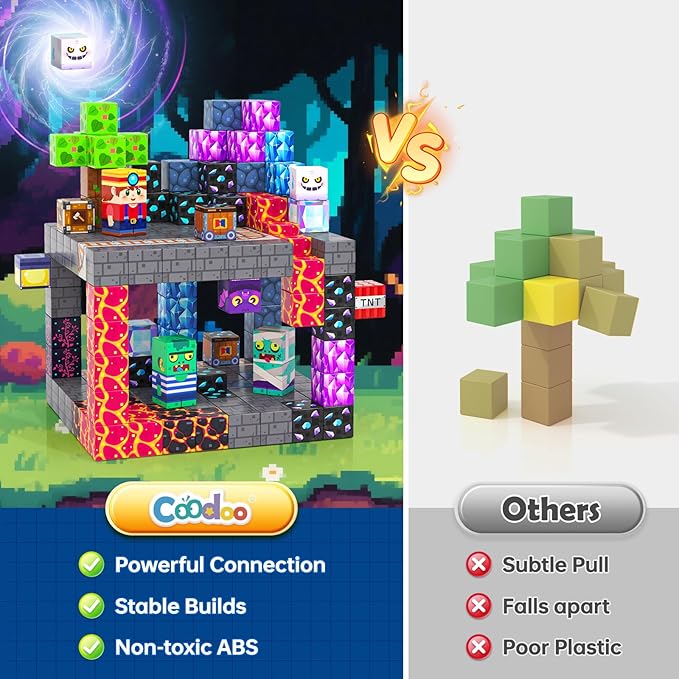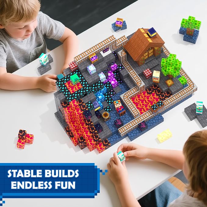 - Safe and Durable: Crafted from high-quality, non-toxic ABS plastic with smooth and rounded edges, there is no need to worry about scratching 3+ kids' hands while playing and exploring. Fully compatible with other magnetic blocks. This Mine Magnetic World Set can be combined with other sets to create a unique magworld