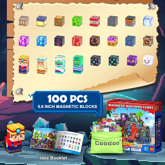 - Magnetic Building Blocks: Unleash the spirit of adventure with our 100PCS magnetic building blocks. Become a brave explorer and step into the mag-world of the mysterious mine with lovable partner. Spark 3-5 5-7 year old’s curiosity and imagination with these magnetic cubes. Enhance 4-8 8-13 boys and girls’ problem-solving and STEM skills
