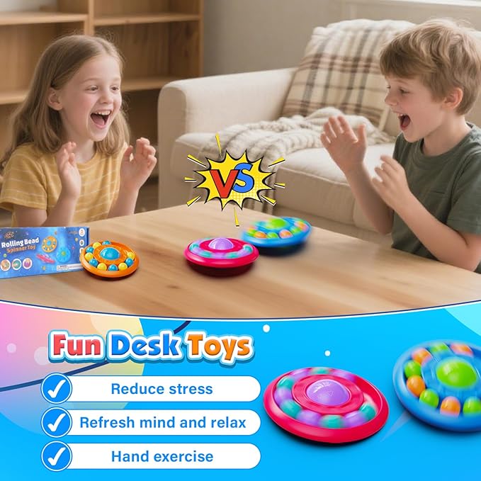- 🌌All-in-One Stress Relief Toys🌌---Break free from habits like nail-biting, skin-picking, or hair-pulling with this all-in-one tactile fidget solution. Designed for both kids and adults, the anxiety relief items keep your hand busy and mind relaxed. Slide the beads along the disk for calming visual tracking, or use the cool gadget as a handheld roller to massage joints and relieve muscle tension. Also the stress relief desk toys can be as a desktop spinner – challenge your child to a spin-off and shared fun.