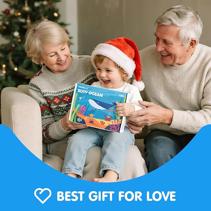 hahaland Ocean Busy Book for Toddlers 1-3, Montessori Toys Sensory Activity Busy Board, Travel Toy for 1 2 3 Year Old Boys Girls, Educational Fine Motor Skills Learning Toy, Toddler Birthday Gift