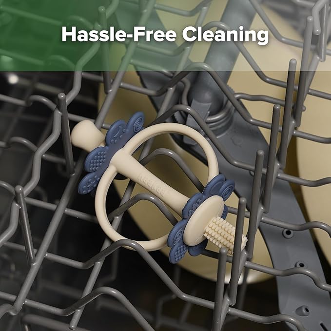 - ππππ-πππππ ππππππ πππ πππππππ:With a nipple-shaped end for comfort and 360Β° bristles for gum massage, this teether provides teething relief and help supports oral hygiene.