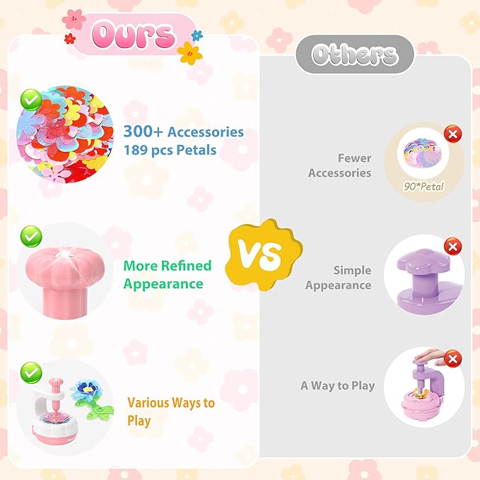 - 🧠【STEM Enlightenment, Education and Entertainment】In interesting play, comprehensively exercise children's hands-on ability, hand-eye coordination ability and concentration. From design, color matching to assembly, every step inspires children's artistic creativity and logical thinking. DIY Bouquet Kit is the ideal educational toy for kids