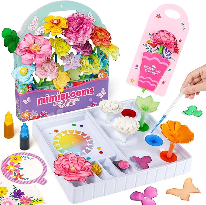- Complete Craft Kit – Includes flower petals, stems, dye tablets, droppers, and instructions to create vibrant paper flowers for fun science and art