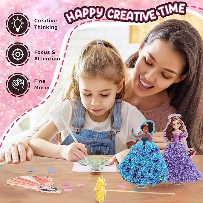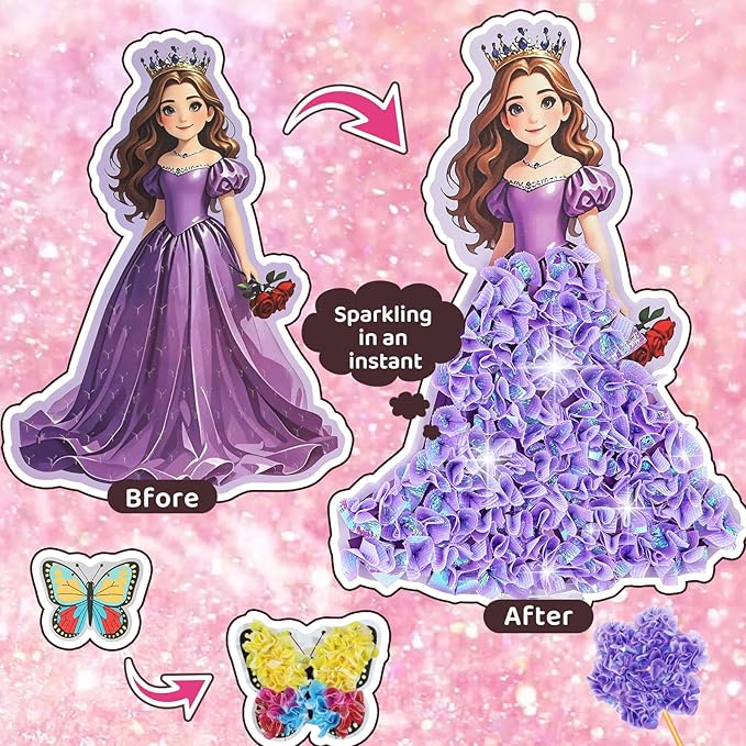 - โจ 10-PIECE MEGA VALUE: Complete mess-free craft kit with 1100+ Fabric Squares, 5 Foam Princesses, 5 Magical Wand, 4Flowers and 1butterflies, 5 Stands, 2Poke-in Sticks, a Poke-in Pad, and an Instruction Manual. โ create magic in minutes, zero cleanup!