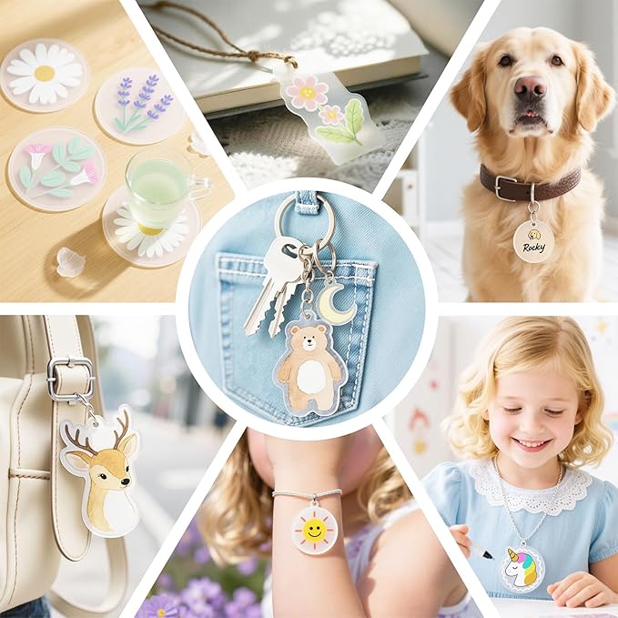 - 【Easy to Make】Just 4 steps: ① Draw and color on the frosted side; ② Cut out the shape; ③ Bake in the oven (watch the fun shrinking process!); ④ Attach accessories.
