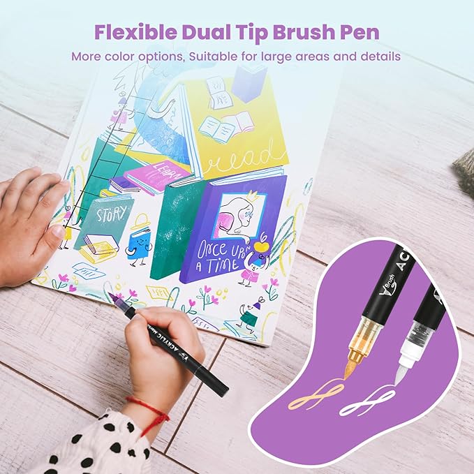 - Versatile Dual Tips for Precision & Coverage: Experience ultimate creative freedom with a fine 0.7mm bullet tip for outlining and intricate detail work, and a broader tip for quickly filling larger areas. This dual design is perfect for everything from detailed adult coloring books to bold rock painting projects