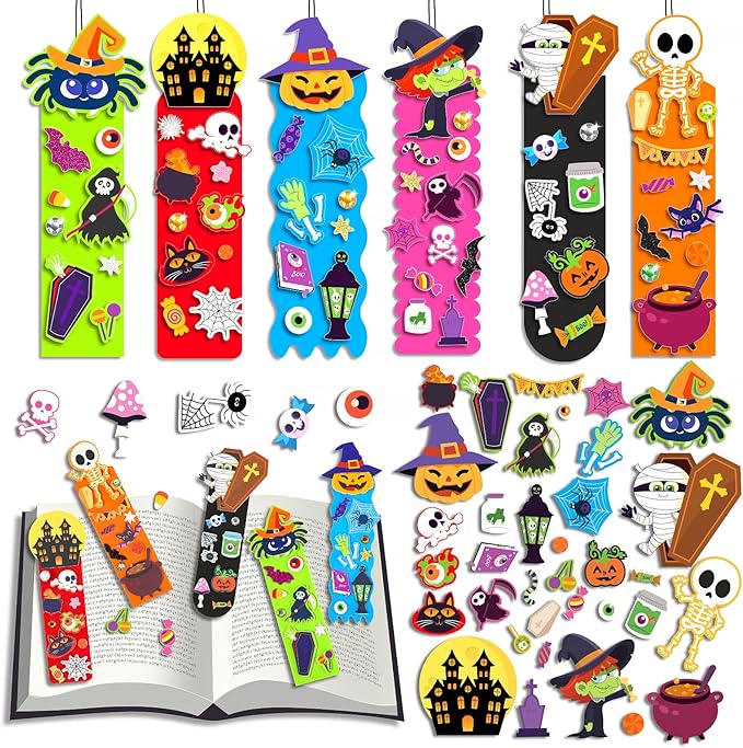 - Ideal Halloween Craft Set: You will get 24 packs of halloween diy bookmarks bulk,own in 6 Halloween characters.Each halloween bookmarks kit is Pre-packaged for individual use.The Halloween crafts kit contains everything you need.It makes a fun party activity at your Halloween party or school Halloween activities.Interesting and in line with little ones' taste,this would be a funny Halloween gifts for kids.
