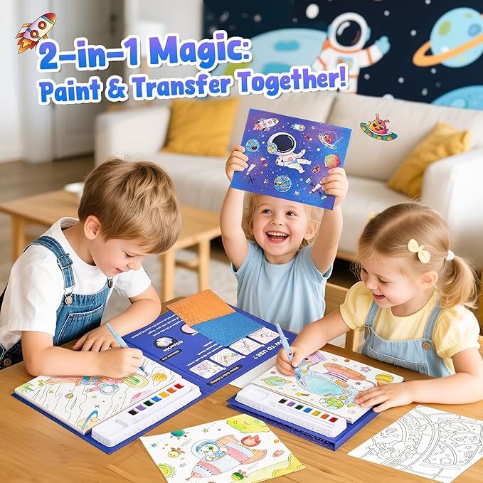 JoyCat Paint with Water Coloring Books, Art & Craft Activity, Princess No Mess Art for Kids Ages 4-8, Craft Kits & Supplies, DIY Creative Activity, Presents for Girls & Boys (Space)