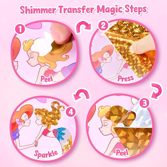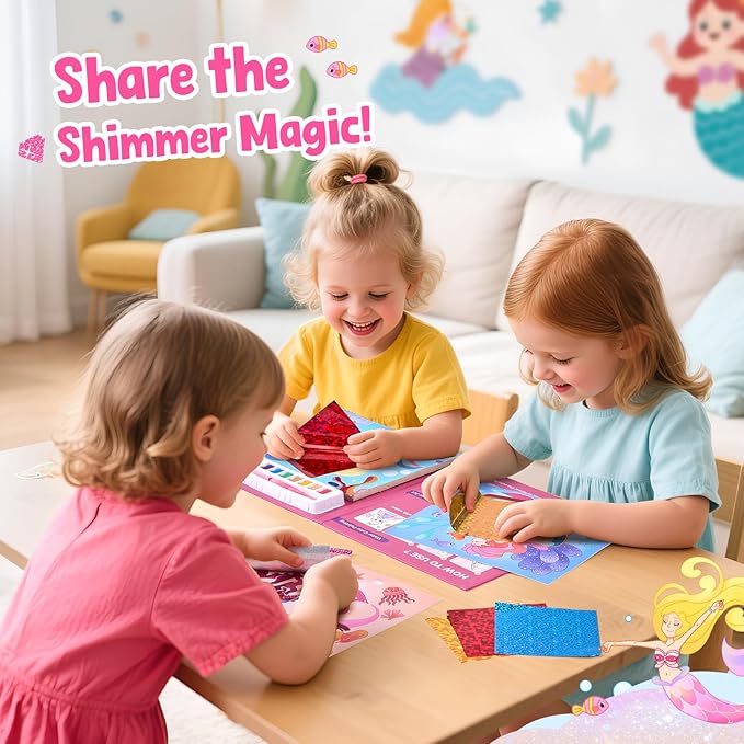 - Sparkling Craft Art, Easy to Create Stunning Underwater World Effects: Craft is simple yet incredibly fun! Simply peel away parts of the design to reveal the sticky surface, apply the sparking pieces, then gently peel it off to reveal a dazzling underwater world artwork. Not only will kids experience the joy of success, but they will also improve their focus and fine motor skill from this craft activity. The vibrant princess-themed artwork will leave kids proudly showcasing their creations