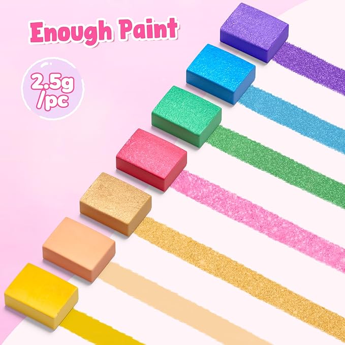 - Convenient Watercolor Book to Boost Focus and Artistry: This set includes 7 safe, easy-to-clean watercolor paints, with 5 featuring a sparkling effect for extra appeal. Kids can freely express themselves on 20 art pages, choosing single colors or blending hues to create Special and vibrant masterpieces. This activity not only sparks imagination but also helps improve concentration and artistic perception