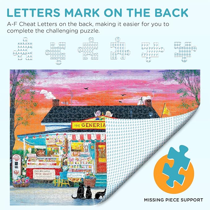 - [Charming Retro Theme] Our puzzles for adults featuring a vibrant “THE GENERIAL STORE” scene with pink trucks, black cats, and a sunset sky. Perfect to decorate your space after finishing, adding a cozy rural vibe to room.