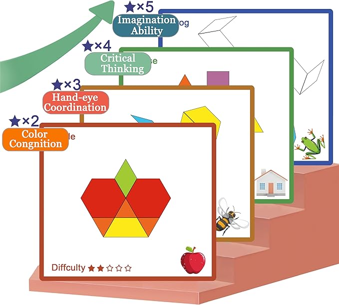 - 【24 VARIED DIFFICULTY TEMPLATES】Experience a dynamic challenge by exploring various difficulty tiers, ranging from beginner-friendly templates to advanced tile matching. Vibrant hues make every move delightful. Match patterns, explore shapes, and stimulate your mind. It’s like painting with wooden tiles!