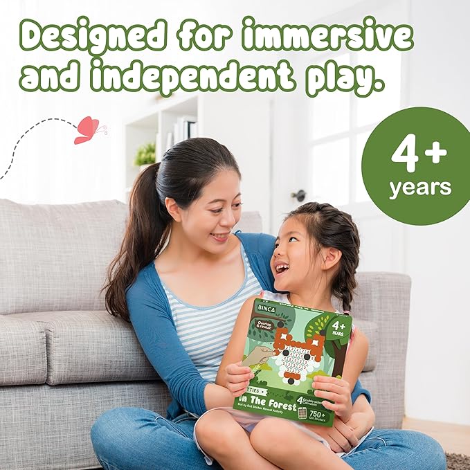 BINCA Dotties Dot Art Activity Kit, 750+ Stickers, Forest Animals Mess-Free Activities, DIY Dot Sticker Art for Toddlers, Kids Travel Activities, Craft Kits & Gifts for Boys & Girls Ages 4,5,6,7