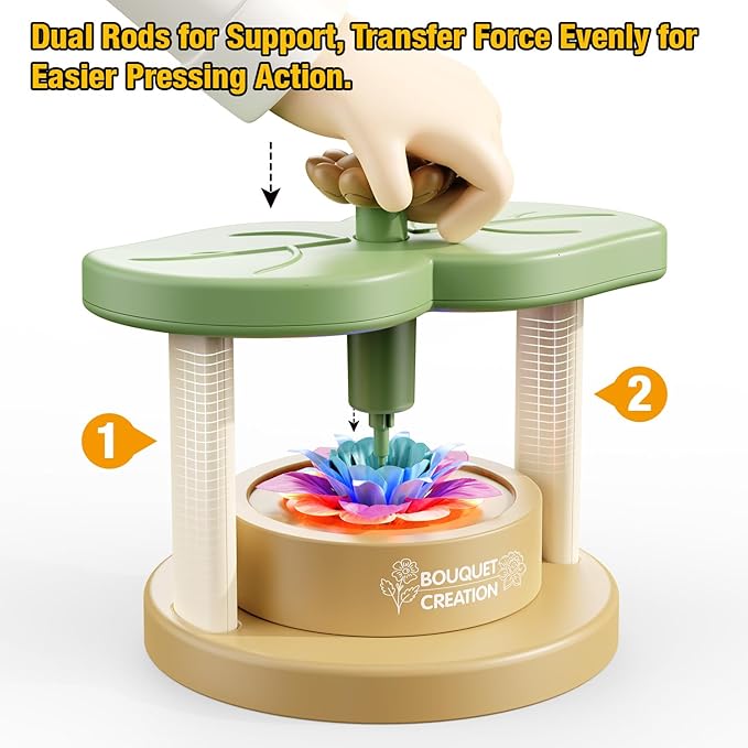 - ๐งฐAll-in-One Kit with Secret Storage:Includes Flower Press Machine (doubles as storage box!),petal types, centers, bendable stems, bouquet wrap, & display base. No missing parts โ every piece stores neatly inside the reusable tool!