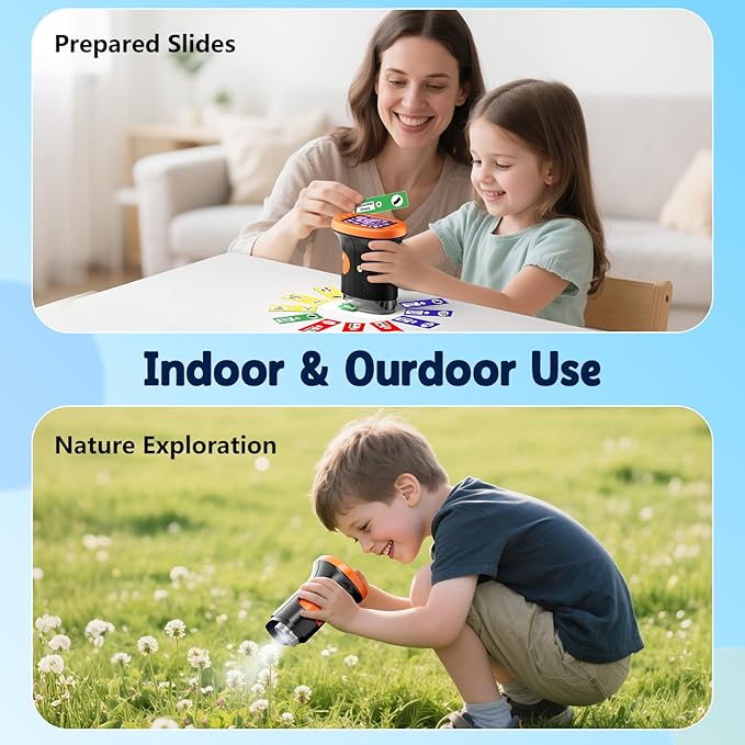 - Perfect Gift for Young Scientists: Designed as a fun and educational STEM toy for ages 5-7 8-12, this microscope for kids combines learning with play. Whether for birthdays, holidays, or special occasions, it’s an inspiring gift that helps boys and girls explore science while having fun