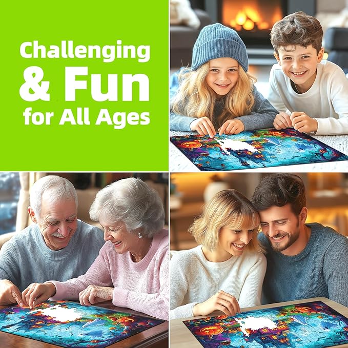 - ๐ Spooky Fun for All Ages: A thrilling 1000 piece puzzle for adults and families alike! Perfect for adult games for game night, Halloween gatherings, or gifting to puzzle lovers. Combines challenge and charm with ghosts, jack-oโ-lanterns, and a glowing haunted mansion.