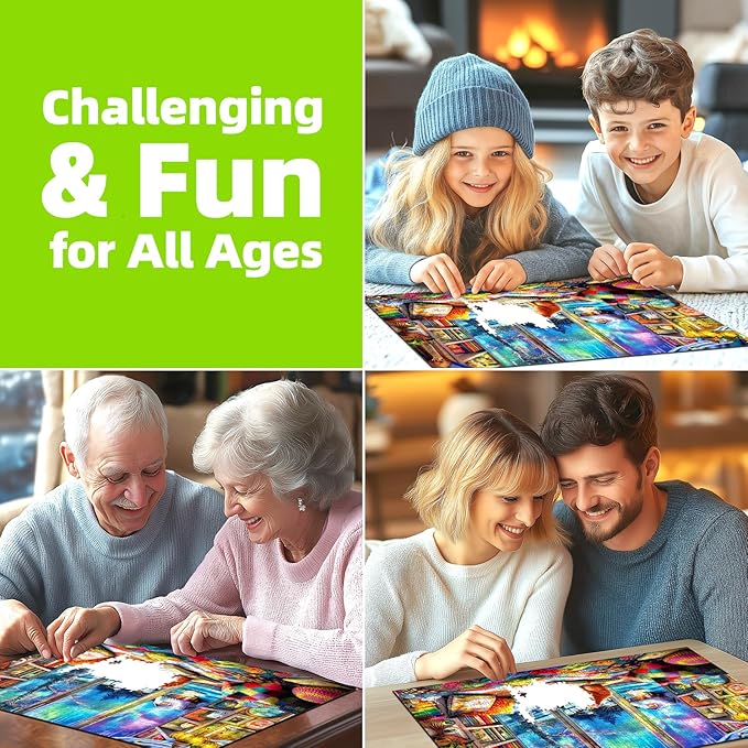 - โจ Premium 1000-Piece Puzzle for Adults: Crafted from thick, recyclable cardboard with precision-cut pieces for a perfect fit. Enjoy a dust-free, frustration-free experience with non-repeating shapes and A-F sorting letters on the back.