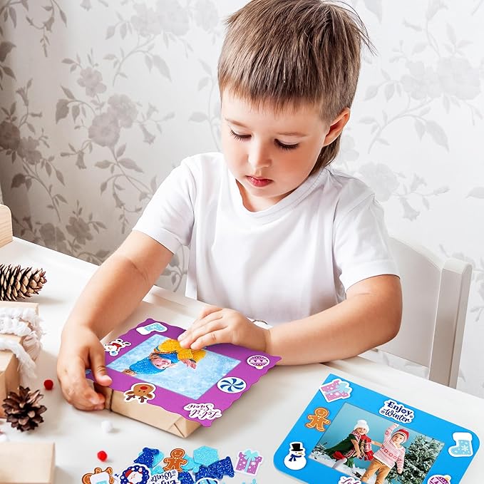 - What's included: includes 24 pieces of winter-themed DIY foam frames300 assorted stickers, and 48 self-adhesive patches, great for group crafts, holiday parties, and fun family activities, giving everyone plenty of materials to create their own winter and Christmas picture frame craft