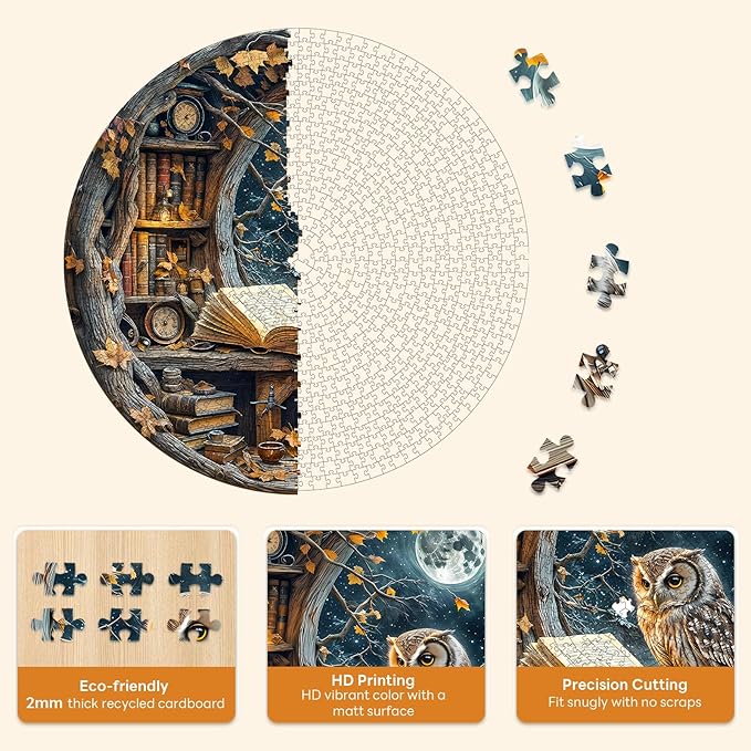 - 【Abnormally Round-shaped Design】Bored of regular rectangular jigsaw puzzles? Then try to take on the challenge of our unique round-shaped flat puzzle, creating a captivating puzzle experience for puzzle lovers.This adult puzzles are great for family engagement. Families also can complete the puzzles together to enhance relationship