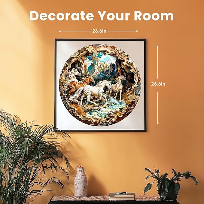 Masseruon 1000 Piece Puzzle for Adults, 26.6 * 26.6in Horse Puzzle for Adults, 1000 Pieces Flat Puzzles with 3D Visual Effect When Completed, Adult Puzzles Games