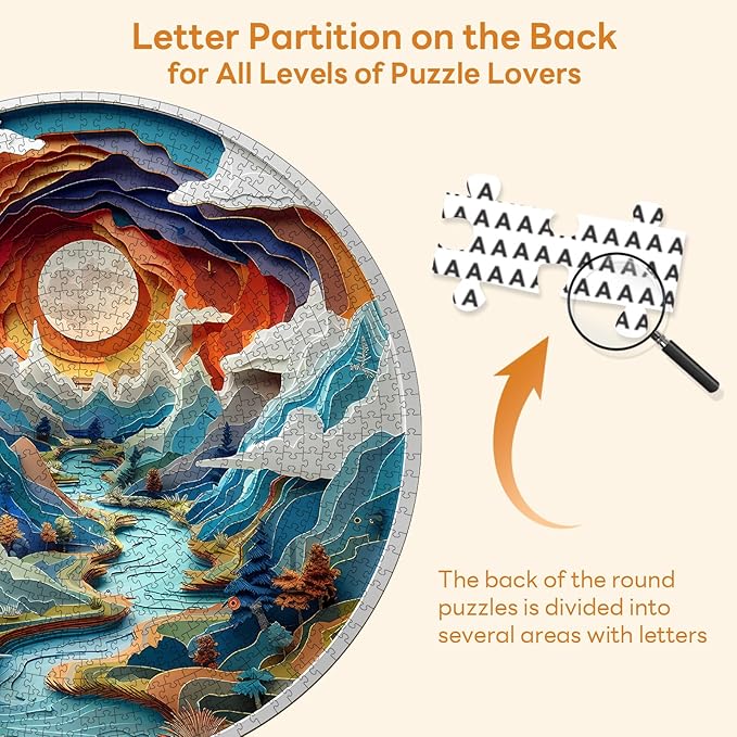 - 【Abnormally Round-shaped Design】Bored of regular rectangular jigsaw puzzles? Then try to take on the challenge of our unique round-shaped flat puzzle, creating a captivating puzzle experience for puzzle lovers.This adult puzzles are great for family engagement. Families also can complete the puzzles together to enhance relationship