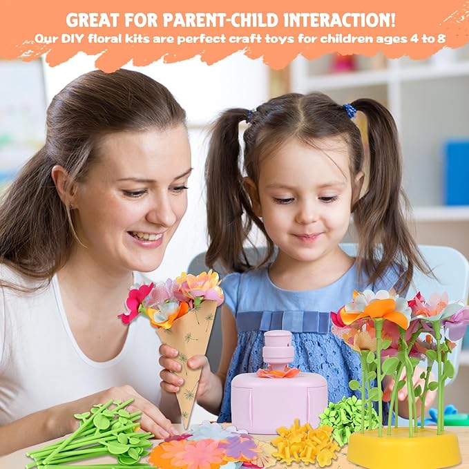 - DIY FLOWER SET: This creative flower bouquets toy crafts stunning flowers, kids can easily mix and match petals, flower centers, and stems to create beautiful bouquets. It's a delightful birthday gift idea for girls ages 3-10. Make a unique floral gift for themselves, family, or best friends. A fun and educational hands-on activity crafts for kids ages 4-8 that encourages creativity, fine motor skills, and a love for design